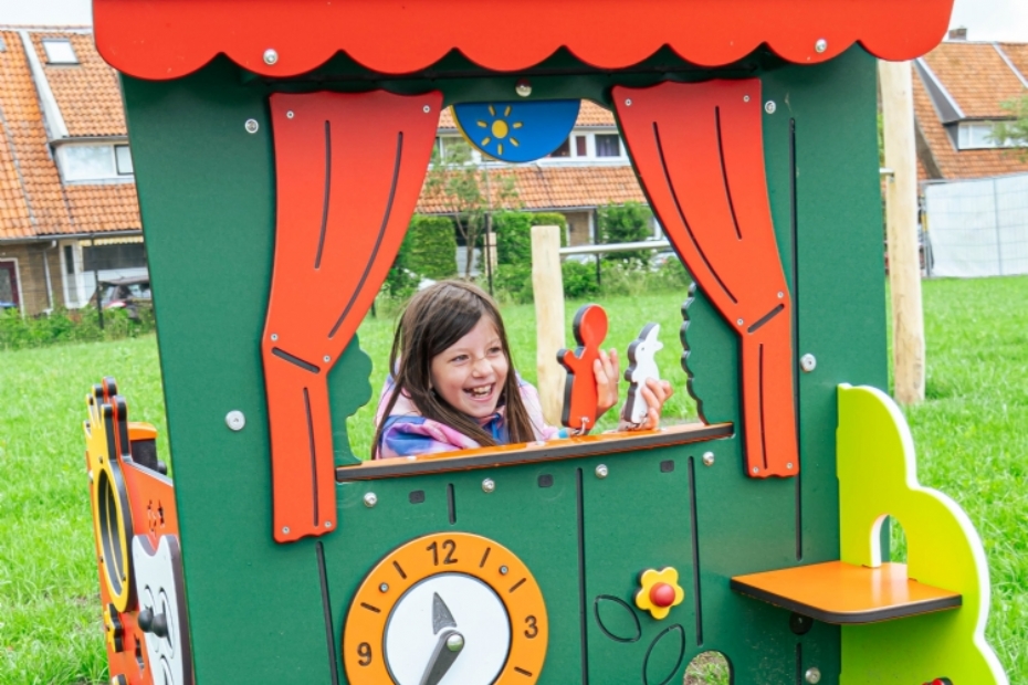 De vernieuwde burcht staat nu centraal opgesteld en trekt meteen de aandacht. Dankzij extra klim- en klautermogelijkheden is er volop uitdaging voor oudere kinderen. Onder de burcht loopt een verhard pad, waardoor ook kinderen met een beperking volledig kunnen meespelen. Langs dit pad zijn inclusieve speelwaarden toegevoegd, zoals: • muziekinstrumenten • spreekbuizen • een poppentheater • een interactief spellenpaneel • een kleine arena voor ontmoeting, theater en dans