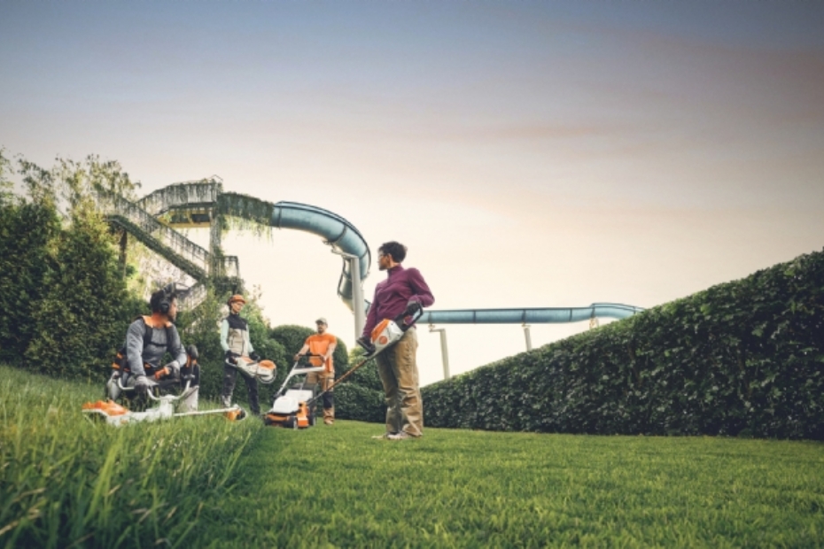 Bezoekers van de stand van Stihl maken kennis met een nieuwe lijn accumachines, zoals de BRA 600 ruggedragen accubladblazer, de FSA 400 accubosmaaier en de TSA 500 accudoorslijper.