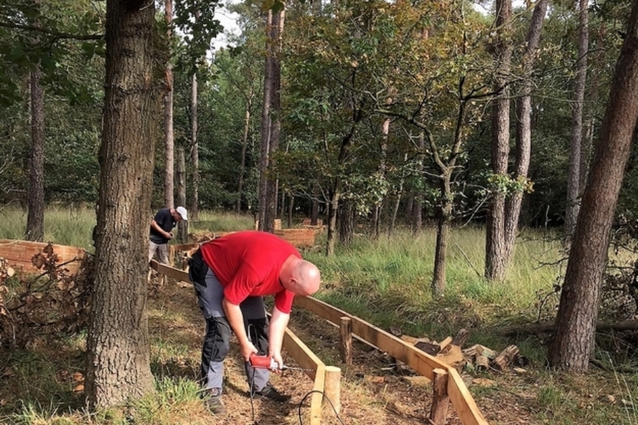 Om iedereen optimaal van de natuur te kunnen laten genieten, besloot Natuurmonumenten in natuurpark De Stippelberg tot aanleg van een plankenpad, dat Houthandel Fransen met veel plezier heeft geleverd én gemaakt.