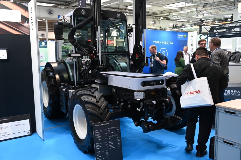 Op Agritechnica zullen heel wat elektrische tractoren aanwezig zijn geweest. Ik liep alleen deze Duitse startup ONOX tegen het lijf. Deze kleine fabrikant presenteerde opnieuw een elektrisch tractorprototype. De machine is volgens de bouwers inmiddels doorontwikkeld, maar blijft fors duurder dan een vergelijkbare dieseltractor. Het unieke element zit volgens hen in de modulaire accu. Die moet overdag vermogen leveren voor veldwerk en 's avonds energie afstaan voor bijvoorbeeld het melken of andere werkzaamheden op het erf. De onderneming profileert zich als startup en richt zich vooral op bedrijven die hun eigen energievoorziening willen koppelen aan elektrische werktuigen.