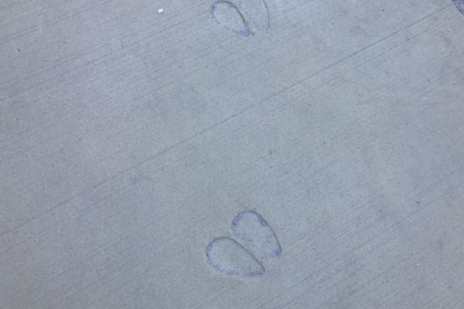 Donker Design heeft samen met Cimitec uit Drachten de pootafdrukken ontwikkeld. Kleine pootjes met kleinere tussenruimte voor de onderbouw en grotere poten met meer tussenruimte voor de bovenbouw. De grootte is bepaald aan de hand van de schoenmaten van leerlingen in de betreffende leeftijdscategorie. Hierdoor zijn de pootafdrukken niet alleen een stukje routegeleiding, maar ook een speelspoor. Ze kunnen springen als een kikker van de ene afdruk naar de andere. Hier en daar ontbreekt een afdruk waardoor er een grotere sprong genomen moet worden naar de volgende afdruk. Na het storten van het beton zijn de afdrukken met de hand in het natte beton gedrukt.