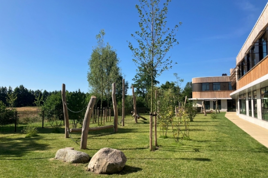 Aan de rand van Drachten ligt de school Samen Kansrijk. Een school voor speciaal onderwijs waar elke dag 500 leerlingen samenkomen om op hun eigen manier en tempo te leren. Het schoolgebouwgebouw springt in het oog door de natuurlijke materialen en de buitenruimte ligt als een groene deken rond het gebouw. Het heldere en groene ontwerp van het schoolplein is van Bureau B+B en is door Donker Design vertaald en uitgewerkt naar een speellandschap waarin elk kind zijn eigen plekje kan vinden. Donker Groen heeft daarna de werkvoorbereiding op zich genomen en de realisatie van het plein eind 2024 uitgevoerd.