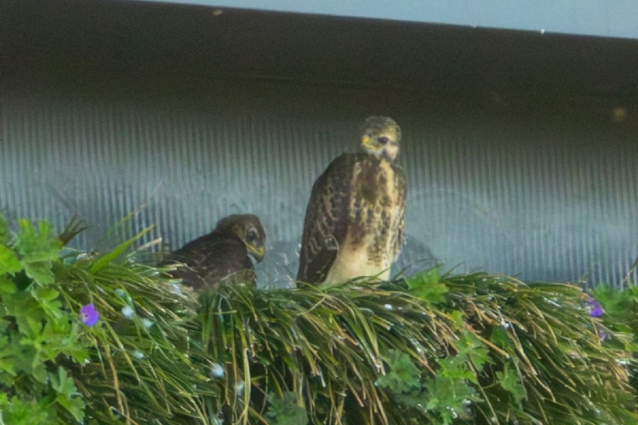 Het nest, gelegen onder een overstek van het gebouw, bood beschutting tegen weer en wind en een goed overzicht over het omliggende landschap, waaronder graanvelden, olifantengras en nabijgelegen snelwegen. Ondanks de dagelijkse bedrijvigheid op en rond het logistiek pand bleven de buizerds ongestoord broeden. Monitoring op afstand door Fauna Haarlemmermeer en de Werkgroep Roofvogels Rijnland bevestigde het uitkomen van twee gezonde jongen eind mei. Op 11 juli zijn deze jonge vogels uitgevlogen.