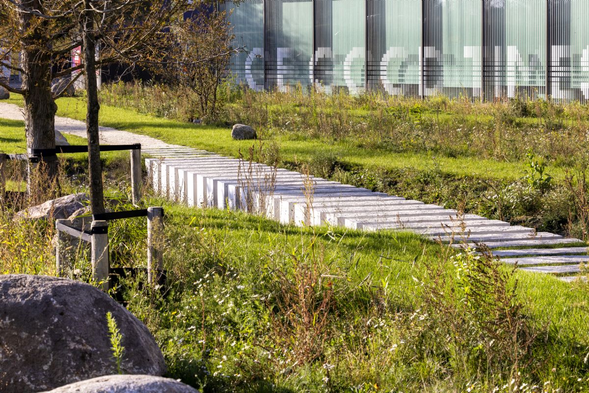 | De groene strook versterkt de verbinding tussen gebouw en omgeving - (foto: Cojan van Toor Fotografie) |