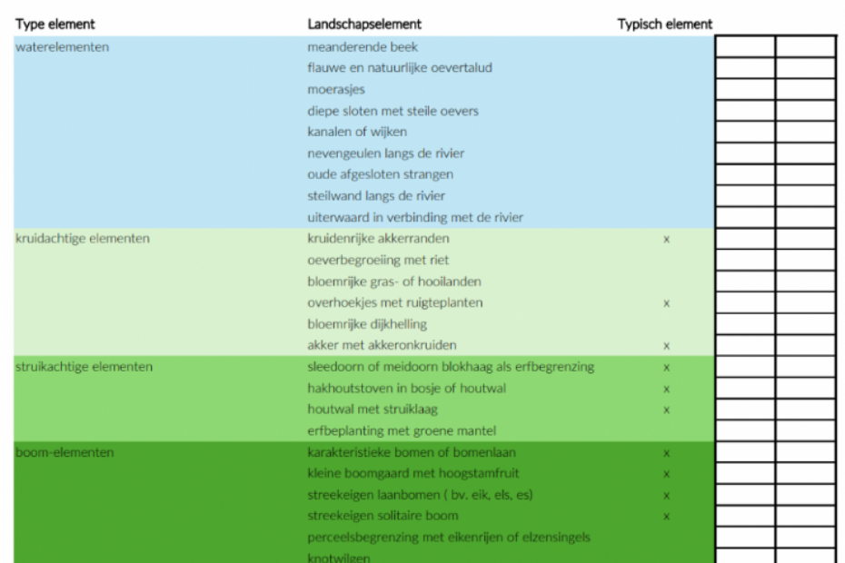 | | Voorbeeld van tellijst om het landelijk gebied in kaart te brengen. |