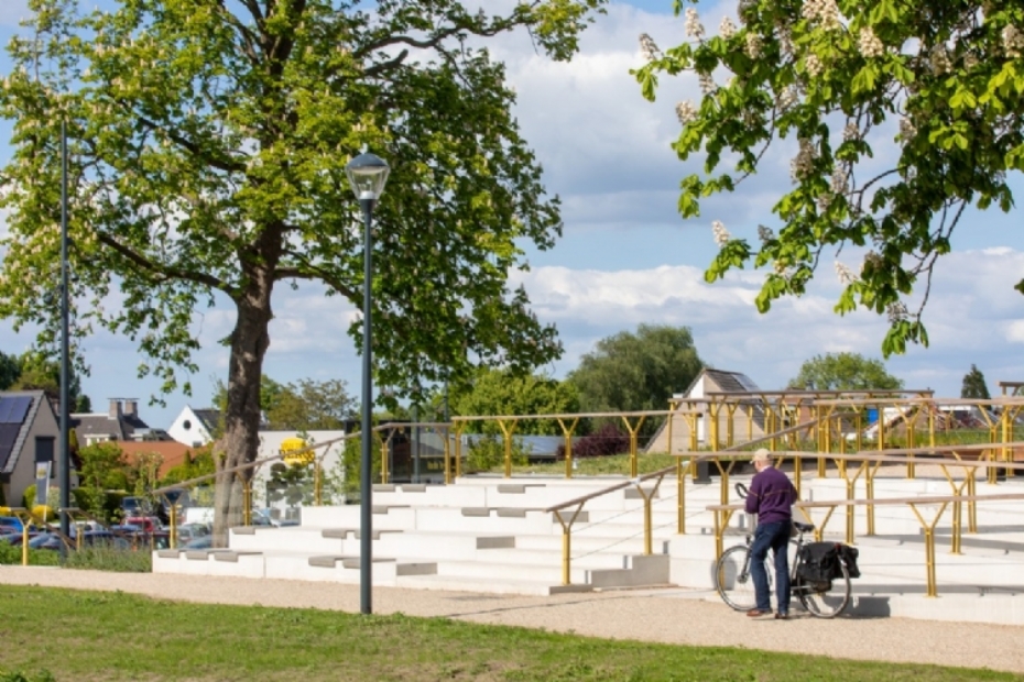 Een van de gerealiseerde onderdelen is de nieuwe fietsenstalling, die begin 2024 in gebruik werd genomen. Wat opvalt, is hoe deze plek meer is geworden dan slechts een doorgangsruimte: bezoekers worden uitgenodigd om even te pauzeren en te genieten van het uitzicht.