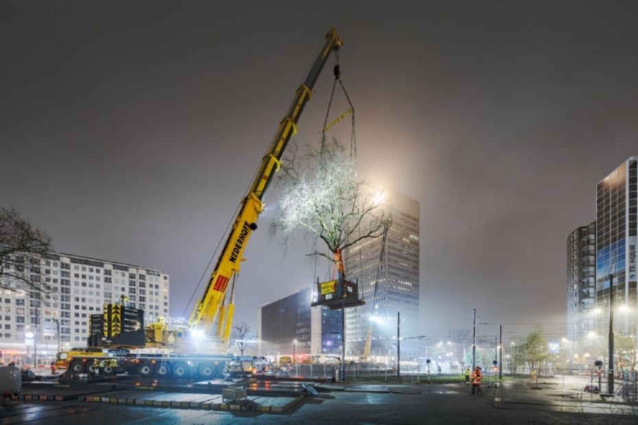Nachtelijke verplanting plataan bij Hofplein Rotterdam |