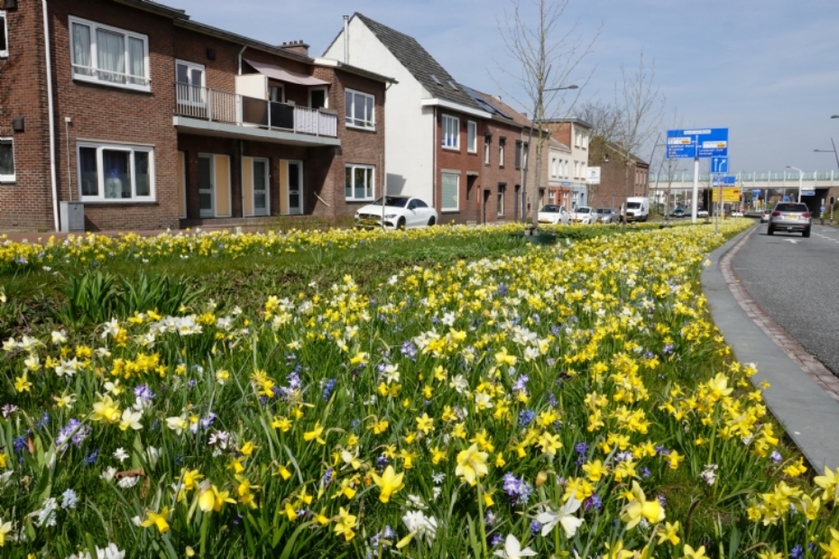 Bij de gemeente Landgraaf is afgelopen najaar een stadsentree aangeplant met het “Bijenparadijs Mengsel”. Dit bloembollenmengsel blijft onder de 40 cm hoog, waardoor de verkeersveiligheid volledig gewaarborgd blijft.