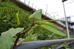 De Japanse duizendknoop is een hardnekkige exoot die snel groeit en andere planten verdringt. Onder de grond vormen zich sterke wortelstokken, waardoor de soort moeilijk te verwijderen is. Maaien of uitgraven kost veel tijd en geld, en zelfs kleine wortelresten kunnen opnieuw uitlopen. Voor beheerders van oevers en infrastructuur zorgt dat voor extra werk en risico's, bijvoorbeeld bij waterkerende taluds.