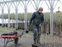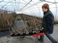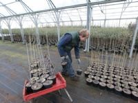 Naam: Mario en Wendy van Aart Bedrijf: Van Aart Boomkwekerijen Leeftijd en opleiding: Mario: 49. Opleiding: middelbare boomkwekerij-vakopleiding Wendy: 47. Opleiding: Erasmus Universiteit accountancy. Wanneer is het bedrijf opgericht en hoe groot is het nu? Mario: ‘Het bedrijf is in 1964 gestart door mijn vader. In 2005 begonnen we met de overname. Sinds die tijd zijn we aardig gegroeid; de omzet is nu zo’n vijf keer groter dan tien jaar geleden. In totaal werken we met vier à vijf man. Naast onze drie vaste medewerkers krijgen we af en toe hulp van zaterdaghulpen of uitzendkrachten. Het bedrijf is met zo’n twee hectare relatief klein van omvang. Dat komt doordat de planten die de kwekerij verlaten relatief klein zijn; we doen vooral aan containerteelt.’ Wendy: ‘Ik heb geen groene achtergrond en ben via Mario in het bedrijf terechtgekomen. Eerst regelde ik alleen de administratie, later de in- en verkoop. Zodoende ben ik beetje bij beetje meer over het vak te weten gekomen.’ Wat is het belangrijkste sortiment? Mario: ‘Ons aanbod is heel divers. Het belangrijkste sortiment dat wij voeren bestaat uit handveredeld loofhout (laanbomen en struiken) en coniferen. Mijn vader is begonnen met coniferen en laanbomen. De coniferen leveren we nu vooral nog op bestelling. We hebben het assortiment later uitgebreid met struiken en andere planten voor bijvoorbeeld tuincentra.’ Wie zijn uw klanten? Mario: ‘Onze klantenkring is heel breed. We leveren aan boomkwekers, handelaren en tuincentra in heel Europa. In eerste instantie leverden we vooral aan de landbouwsector. Naarmate het assortiment werd uitgebreid, zijn daar andere klanten bijgekomen: tuincentra, maar ook kopers in het buitenland. We hebben bijvoorbeeld ook een eigen zuilhibiscus ontwikkeld. Deze wordt behalve in Nederland en Duitsland ook gekweekt en op de markt gebracht door bedrijven in Canada en Amerika. Daar ontvangen wij royalty’s voor. De in- en verkoop van het bedrijf doen we zelf. We kopen direct in van leveranciers en verkopen direct aan onze afnemers.’ Wendy: ‘De crisis dwingt je om creatief te zijn. Enerzijds zijn we door een veranderende markt op zoek gegaan naar andere afzetmarkten; tegelijkertijd focussen we op de ontwikkeling van nieuwe soorten en dat brengt natuurlijk ook andere afnemers met zich mee. Sommige producten zijn nu eenmaal bij uitstek geschikt voor een specifieke markt, zoals tuincentra.’ Denkt u dat strengere regels voor gewasbescherming uw bedrijf in gevaar kunnen brengen? Wendy: ‘We hebben in het verleden al gemerkt dat dat voor problemen kan zorgen. Zo hebben we ooit last gehad van een taxuskever. Dat heeft ons veel schade opgeleverd, omdat we de geschikte middelen niet mochten toepassen. Ons bedrijf ligt vlakbij een dorpskern en dan heb je ook met specifieke regelgeving als spuitzones te maken. We proberen sowieso zo weinig mogelijk middelen te gebruiken, maar soms kun je het nu eenmaal niet vermijden. Het lijkt er soms op dat in Nederland middelen lukraak verboden worden, zonder dat er gekeken wordt naar een goed alternatief. Veel maatregelen zouden zogenaamd “EU-breed” zijn, maar Nederland is toch wel het braafste jongetje van de klas. Het is toch een beetje raar dat sommige middelen in België wel mogen worden toegepast, terwijl ze hier verboden zijn.’ Hoe ziet u de toekomst van uw bedrijf? Wendy: ‘De wens is een kleine groei van het bedrijf. Daarnaast willen we ons bezighouden met het doorontwikkelen en in de markt zetten van nieuwe soorten en willen we onze huidige klantenkring blijven bedienen. Ook willen we kijken naar de mogelijkheid om met de verkoop van nieuwe soorten weer royalty’s binnen te halen; dat brengt toch nieuwe inkomsten met zich mee. Het streven is een gespecialiseerd en vernieuwend aanbod van goede kwaliteit te blijven bieden.’ Denkt u dat relatief kleine kwekerijen zoals die van u op de langere termijn nog toekomst hebben? Wendy: ‘Ja en nee. Wat wij doen, is gespecialiseerd werk dat moeilijk te automatiseren is. Ik ben daarom niet zo bang dat wij geen toekomst hebben. Maar bedrijven met een meer standaard-assortiment zullen wel sneller opgaan in grotere bedrijven. Ons is ook weleens gevraagd of we niet alles voor één groot bedrijf willen kweken. Maar dan ben je zo afhankelijk; dat moet je niet willen.’ Wat doet u als u niet aan het werk bent? Mario: ‘In de schaarse uurtjes die we vrij zijn, genieten we samen met onze twee kinderen van zestien en achttien jaar oud. We gaan dan bijvoorbeeld uit eten of naar het theater.’