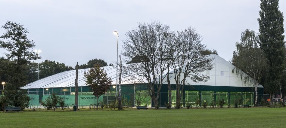 Nieuwe tennishal voor USC Tennis in AmsterdamSteeds meer tennisverenigingen hebben de behoefte om het hele jaar door te tennissen, zo ook USC Tennis in Amsterdam.Veldeman bouwde er afgelopen zomer een tennishal van 40m breed en 70m lang die vier hardcourtbanen overdekt. Dankzij dit concept met zijwanden, die geopend kunnen worden, zijn spelers in de winter beschermd tegen koude, wind en regen en genieten ze 's zomers van een buitensportgevoel. Het lichtdoorlatend zeildoek zorgt voor een natuurlijke lichtinval. Aanneemsom: 378.000 euro Naam opdrachtgever: Sportexploitatiemaatschappij UVA CV Contactpersoon opdrachtgever: Contactgegevens opdrachtgever: Tennispark USC, Radioweg 80, Amsterdam Naam architect (adviesbureau): Happy Feet sports systems bv Contactpersoon architect (adviesbureau): Henk Breunissen Contactgegevens architect (adviesbureau): Tielweg 5, 2803 PK Gouda; +31 64 80 63 361; henk@happyfeetsports.nl Naam aannemer: Veldeman Structure Solutions Contactpersoon aannemer: Stef De Coninck Contactgegevens aannemer: Industrieterrein Vostert 1220, 3960 Bree, België ; +32 89 47 31 31 ; stef.de.coninck@veldemangroup.be