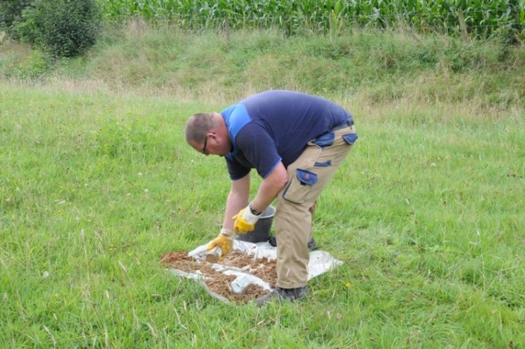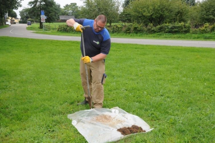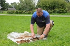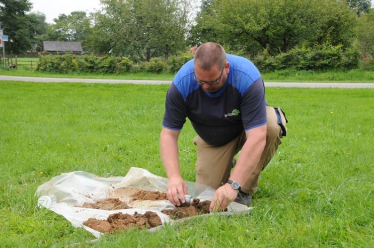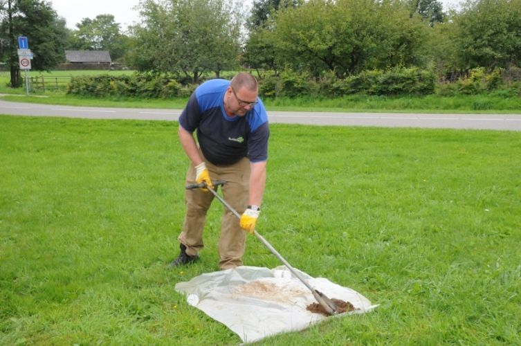 Het Waterschap Rijn en IJssel is van plan om een bestaand hoofdriool te vervangen en op een andere plaats neer te leggen. Het is daarvoor wel nodig om op het nieuwe tracé te onderzoeken of sprake is van bodemvervuiling. Rondeel maakt met een eenvoudige grondboor bodemprofielen. Deze stalt hij netjes voor zich op een plastic zeiltje en neemt vervolgens op de verschillende dieptes monsters. De monsterpotjes worden vervolgens van barcodes voorzien en ingescand met een Psion handcomputertje. Op die manier is meteen een GPS locatie aan het monster gekoppeld. Met de hand wordt de diepte genoteerd. Deel van het onderzoek dat het waterschap laat uitvoeren is ook onderzoeken of er sprake is van verontreiniging van het grondwater.