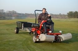 Rien Hardeman, hoofdgreenkeeper op de Lage Vuursche: “Ter vervanging van onze oude stalen grastrailers zochten we naar een type waarvan de laadbak niet kon roesten. Ook wilden we dat de karren rammelvrij hun werk konden doen en dat ze voldoende inhoud hadden. Hierbij is het niet de bedoeling ze volledig vol te laden maar juist wat reserve te hebben zodat er niet gemorst wordt. De grote luchtbanden zorgen daarbij voor een lage bodemdruk.”