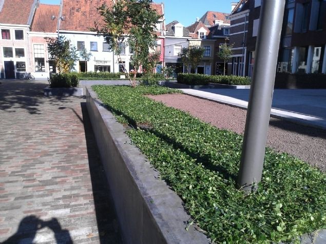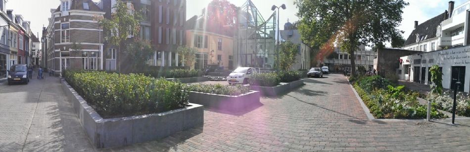 Het eindbeeld moest bij aanleg al gerealiseerd zijn. Belangrijk is respect voor de beplanting en met name de gezamenlijke moestuin; er is niets afgebakend en er wordt niets vernield. De kolen kunnen uitgroeien en geoogst worden! En dat midden in de stad met het uitgaand publiek in het weekend. Voor ons bedrijf was het voor het eerst kennismaken met de verwerking van covergreen-beplanting (kant en klare 'tegels' van planten). Wat we bij deze klus hebben geleerd is dat groepen bloembollen onder deze 'tegels' de tegels in het voorjaar opdrukken omdat deze nog niet geworteld waren. Aanneemsom: ca. € 65.000,- Naam opdrachtgever: Gemeente Deventer Contactpersoon opdrachtgever: Wim Lefers Contactgegevens opdrachtgever: Beheer openbare ruimte en omgevingsmanagement, Team Ontwikkeling, Realisatie en Beheer Bezoekadres: Leeuwenbrug 85, 7411 TH Deventer, 7e verdieping Postadres: Postbus 5000, 7400 GC Deventer Naam architect: Buro Lubbers Contactpersoon architect: Zie opdrachtgever Naam aannemer: Het Groenbedrijf Contactpersoon aannemer: R. Lubberts Contactgegevens aannemer: Het Groenbedrijf, Hanzeweg 19, 7400 AB Deventer, 0570-856400