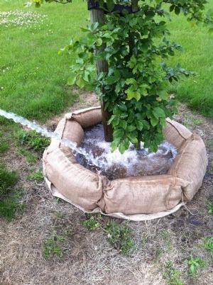 Roel Janssen, directeur van Biggelaar Groen: 'Het is een zeer duurzame en milieuvriendelijke oplossing, omdat alle materialen natuurlijk afbreekbaar zijn. Deze gietrand werkt ook remmend op uitdroging van de bovenlaag. Als je water geeft met een grote straal, dan veroorzaakt dat geen wegspoeling van grond. Door de breedte van de gietrand voorkom je een extreme onkruidgroei rondom de boom. Na een groeiseizoen valt de jute uit elkaar en kan de grond verspreid worden.'