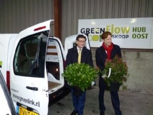De openingshandeling bestond uit het inladen van tuinplanten bestemd voor de handelsbedrijven Greenlink en Sap Holland. Burgerintiatief Vanuit een burgerinitiatief in Boskoop heeft de provincie in 2014 een onderzoek ingesteld naar de problemen rond de Gouwekruisingen voor scheepvaart en wegverkeer rond de hefbruggen. In juni 2014 kwamen diverse 'quick wins' uit het onderzoek naar voren. Er is een voetgangersverkeerslicht geplaatst om de doorstroming te bevorderen. Daarnaast is het project Green Flow gestart om de agrologistiek te verbeteren en de verkeersdrukte in het centrum van Boskoop terug te dringen, waarvoor door de Provincie Zuid Holland een subsidie is toegezegd. Optimaliseren logistiek Het accent binnen Green Flow ligt op optimalisatie van de logistiek van de kleinere bestellingen. Het 'just-in-time' leveren van planten en bomen en snel inspelen op orders is de kracht van Greenport regio Boskoop maar kan efficiënter. Vooral het transport van oost naar west kost veel tijd. Daarom is nu een proef gestart met een logistieke hub ofwel een centraal laad- en lospunt op de Halve Raak in Boskoop Oost (terrein Fred Stolwijk). Op dit moment nemen elf handelsbedrijven uit Boskoop West deel, namelijk SAP Holland, Boomkwekerij Richard Dorst, Greenlink, T. Wezelenburg, D van den Bosch Export, Floralis, Pannebakker & Co, Jan Willem Wezelenburg VOF, W.J. Spaargaren BV, Maarten Graafland Sales, Miquel Groen Plantenexport en de transporteurs Hazerswoude-Boskoop Transport en vervoersbedrijf A.J. van den Hoogen & Zn en Houtman Logistiek. De verwachting is dat het aantal handelsbedrijven snel zal toenemen. Gemakkelijker transport Boomkwekers uit Boskoop-Oost leveren kleine bestellingen van een paar trays of kisten tot enkele losse planten af bij de hub. De deelnemende handelaren uit Boskoop West laten deze bestellingen gezamenlijk door een transporteur ophalen of halen deze zelf op. Dit bespaart alle partijen tijd en het aantal vervoersbewegingen over de brug vermindert. Aantrekkelijk tarief De collectieve transporteurs hebben een aantrekkelijk tarief gemaakt voor het transport van kleine vrachten waardoor het voor kwekers en handelaren nog aantrekkelijker wordt om naast grote partijen ook de kleinere orders via collectief transport te laten vervoeren. Verder ontwikkelen Andere ontwikkelingen waaraan wordt gewerkt zijn de bouw van een App die kwekers en burgers inzicht kan geven wanneer de hefbrug open is en een App voor handel en kwekers om transportopdrachten beter, makkelijker en sneller door te geven. Uitvoering Het project GreenFlow Boskoop wordt uitgevoerd door SmartID Services in samenwerking met Delphy in opdracht van gemeente Alphen aan den Rijn.