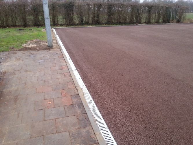 De club heeft gekozen voor Gravel Pro, een gravelbaan op afschot zodat tijdens hevige regenbuien het water van de baan stroomt en opgevangen en afgevoerd wordt in de rvs lijngoten die langs de baan zijn aangelegd.