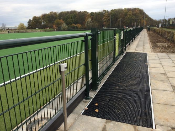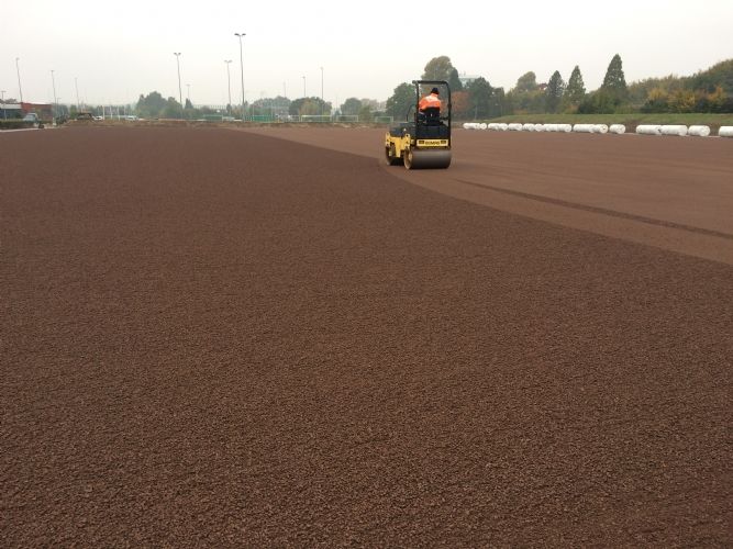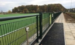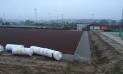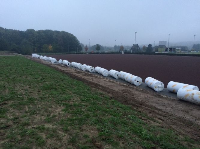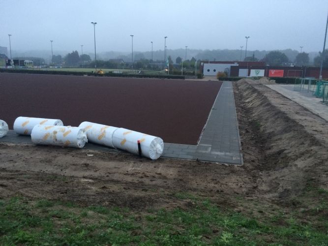 - Verwijderen bestaande ballenvangers en afrasteringen. - Bestaand grasveld afgraven en verwerken in te realiseren terpen voor tribune naast veld. - Aanleg drainage, aanbrengen zand, aanleg van de sporttechnische laag, en de kunstgrasmat. (Fieldturf Hockey-Gold WB 14-40) - Aanleg nieuwe beregening. (Smits) - Het plaatsen van 8 nieuwe veldverlichting. - Het aanbrengen van hekwerken, doelen, ballenvangers en overige inrichtingsmaterialen. Aanleg extra voorziening voor beregening. Aanneemsom: 329.800,00 euro Naam opdrachtgever: Gemeente Venlo Contactpersoon opdrachtgever: C. Janssen Contactgegevens opdrachtgever: 06-54.75.07.27 Naam architect: Copier Contactpersoon architect: P. v. Gils Contactgegevens architect: 06-51.88.64.25 Naam aannemer: Topgrass BV St. Oedenrode Contactpersoon aannemer: T. Sanders Contactgegevens aannemer: 06-10.38.99.49