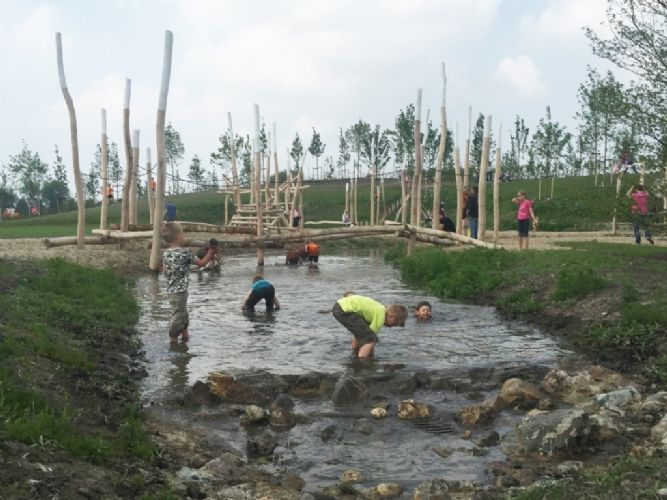 Het water loopt, met brede oevers, door in de aanliggende woonbuurten. De lanen die de entree van de wijk vormen, raken aan het park. Programmatisch is het grote Parkeiland het zwaartepunt. Dit eiland is slechts 3,5 ha, maar bevat het programma van een volwaardig stadspark. Duidelijk bestemde plekken gaan samen met vrije ruimten, doordat het park uit drie landschappen is opgebouwd: de ringdijk, het open veld en de beboste rug. Sport- en spelvoorzieningen liggen in het open veld en in het zicht van de wijk. Het dijkje en de beplante wal bieden plaats aan lange paden. Je wandelt buitenom en binnendoor, je klimt en daalt, loopt door bos en langs water of moeras, steeds een andere sfeer met wisselende uitzichten. De speelvoorzieningen versterken de verschillende sferen van het park: spelen met of in water en zand; klimmen en glijden op de helling van de boswal; verschillende sport- en spelvelden. Naam opdrachtgever: cv Park Triangel Contactpersoon opdrachtgever: Robert Jan van den Brink Contactgegevens opdrachtgever: rj.vandenbrink@parktriangel.nl Naam architect: Lodewijk Baljon Landschapsarchitecten Contactpersoon architect: Marie-Laure Hoedemakers Contactgegevens architect: marielaure@baljon.nl 020-6258835 Naam aannemer: Heijmans Naam aannemer groenaanleg: GKB Naam aannemer speelvoorziening: Eibe