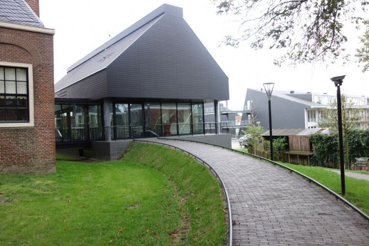 Na bijna vier eeuwen in gebruik was de inrichting van de terp versleten, fragmentarisch en gedateerd en was het grondlichaam in de loop der jaren als geheel verzakt. Bovendien werd er een gemeenschapshuis aan de kerk gebouwd. BiermanHenket architecten ontwierp een uitbreiding waarin naast kerkelijke diensten tentoonstellingen, bijeenkomsten en concerten worden georganiseerd. Naast de hoofdtoegang tot de kerk moest de nieuwbouw op verschillende niveaus worden ontsloten. Met enkele uitsneden uit het grondlichaam van de terp zijn de ontsluitingen van de kerk en de nieuwbouw op een rustige manier in de terp georganiseerd. Om het geheel tot een eenheid te smeden, is het pad naar de zijkant van de nieuwbouw verlengd tot een rondlopend pad met een sierlijke, autonome vorm. Enkele monumentale bomen konden worden gehandhaafd. Daarnaast zijn nieuwe bomen toegevoegd die losjes rond de kerk zijn gestrooid om de nadruk op de terp zelf te houden. De terp is geheel met gras ingezaaid. Er zijn 100.000 bollen geplant voor een spectaculair voorjaarsbeeld.