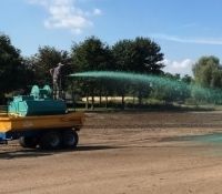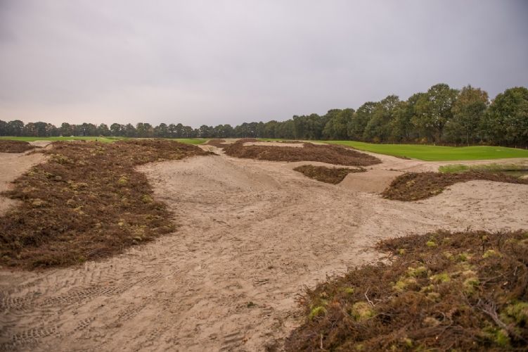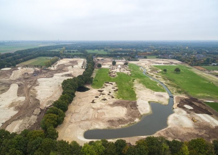 Het uitgestrekte werkgebied bestaat uit drie compartimenten en met name in compartiment 1 is de ontwikkeling inmiddels al goed zichtbaar. In september werd er ingezaaid middels hydroseeding met mengsels van Barenbrug. Inmiddels is het gras opgekomen en kleurt de golfbaan groen. Ook zijn er na het eerdere spitwerk tussen de verschillende holes heidegebieden en zandverstuivingen aangebracht, zo laat aannemer Jos Scholman weten.