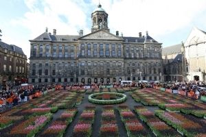 Pal voor het Koninklijk Paleis Amsterdam op de Dam leggen tulpenkwekers een gigantische pluktuin aan met zo'n 200.000 tulpen. Vanaf 13.00 uur mag iedereen gratis een bos tulpen plukken