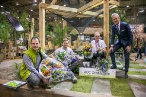 Bij de finale tijdens Tuinidee in Den Bosch kregen zij de hoogste waardering voor hun woestijntuin. Op de tweede plaats eindigde het team van het Wellantcollege uit Houten. Het brons ging naar team Groenhorst uit Velp. Team Helicon uit Boxtel werd vierde. Het winnende team heeft zich volgens de jury vooral onderscheiden door de nauwkeurige maatvoering, de uitstekende samenwerking en het werktempo. In oktober zullen ze de nationale titel 'beste hovenier' verdedigen tijdens Worldskills 2017, de wereldkampioenschappen voor beroepen in Abu Dhabi. "Fantastisch", vindt Timo. "Deze wedstrijd was een enorme ervaring en dan met dit resultaat, echt ongelooflijk." Teammaat Stefan kan het nog maar moeilijk geloven. "We gaan het even laten bezinken en dan vol gas naar Abu Dhabi!" Technische uitdagingen Het tuinontwerp van Emiel Versluis van Vis à Vis Ontwerpers bevatte pittige technische uitdagingen. De ontwerper liet zich inspireren door de omgeving van Abu Dhabi en ontwierp een oase in de woestijn, met Perzische invloeden en strakke geometrische lijnen. "Een bijzonder ontwerp, met zeer technische elementen, zoals een pergola waar veel zaagtechniek aan te pas komt en een tegelplateau waar eigen creativiteit in kon worden gelegd", vertelt juryvoorzitter Bas van Swigchem. Vakkanjers Presentatrice Marit van Bohemen reikte samen met VHG-directeur Egbert Roozen de oorkondes en medailles uit aan de teams. Roozen complimenteerde de organisatoren, deelnemers, jury en sponsoren met deze uitstekende promotie voor het groene vak. "De branche verwacht een groot tekort aan vaklieden. Daarom moeten we alles op alles zetten om jongeren te interesseren voor dit mooie beroep. VHG investeert veel in de samenwerking tussen scholen en bedrijven en wil het vak ook meer aanzien geven door de Meestertitel te introduceren. Met al onze initiatieven blijken we een voorbeeld voor andere branches." Organisatie De Nationale Wedstrijd Tuinaanleg 2017 is georganiseerd door Branchevereniging VHG in samenwerking met de AOC's. Van Swigchem constateert dat de animo bij de AOC's om deel te nemen aan de wedstrijd toeneemt. "Steeds meer scholen organiseren voorrondes tijdens een open dag of beurs en zoeken daarbij verbinding met het bedrijfsleven. Dat is heel waardevol. Die wedstrijden verlopen bovendien, net als deze finale, in een uiterst prettige sfeer. Het is echt een sportieve competitie." De wedstrijd is mede mogelijk gemaakt door bijdragen van Colland Arbeidsmarkt, FNV Agrarisch Groen, CNV Vakmensen, het ministerie van Economische Zaken, AOC-Raad, Worldskills Netherlands en TRI groei in groen. Daarnaast kon de organisatie rekenen op steun van een groot aantal materiaalsponsoren. Op de foto: coach Harry Wesselink, Stefan Schoolderman, Timo Kruize en VHG-directeur Egbert Roozen.