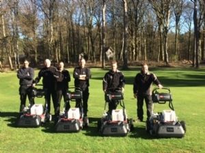 Het greenkeepersteam van de Hilversumsche Golfclub nam onlangs vier elektrische Toro eFlex2100 greenmaaiers in gebruik. De greenkeepers kunnen nu maaien zonder last te hebben van uitlaatgassen.