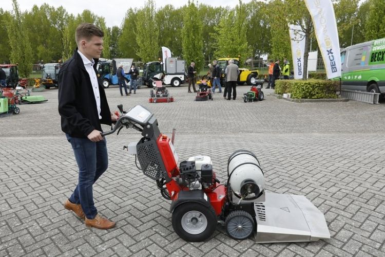 Nederlandse primeur: Rein Drost met flexibele onkruidbrander op Ransomes