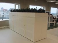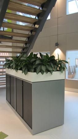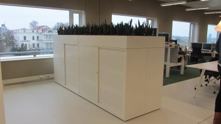Belangrijk bij de renovatie was circulariteit en duurzaamheid (BREAAM methode). Dat betekent het zoveel mogelijk hergebruiken van reeds aanwezige materialen en het duurzaam toepassen van nieuwe materialen. De grootste wens was om de herkenbaarheid van de verschillende verdiepingen en afdelingen met groen te versterken. Er zijn 3 verschillende werkruimten in het pand aanwezig: het atelier, de kantoren en de bibliotheek. Daarnaast zijn er nog een aantal belangrijke ontmoetingsplekken, zoals de restaurants, café's en het atrium centraal in het gebouw. Donkergroen Ontwerp&Advies in Tiel heeft diverse ontwerpen gemaakt in samenwerking met de interieurarchitect COARE uit Amsterdam. In december heeft Interieurbeplanting Tiel met een heel team hard gewerkt om alles op tijd af te krijgen voor de ingebruikname van het pand op 3 januari door alle 1.300 medewerkers van Alliander. Op 9 maart 2017 was de feestelijke opening van het vernieuwde Bellevue, hierbij was ook de architect van het gebouw aanwezig, Thomas Rau, die gespecialiseerd is in het circulair ontwerpen en renoveren van gebouwen. Naam opdrachtgever: Alliander NV Contactpersoon opdrachtgever: Linda van der Horst Contactgegevens opdrachtgever: linda.vander.horst@alliander.com,linda.vanderhorst@yask.nl Naam architect: Thomas Rau/ Coare Contactpersoon architect: Thomas Rau/ Peter Hoens Contactgegevens architect: info@rau.eu/ peter@coare.nl Naam aannemer: Donkergroen B.V. Contactpersoon aannemer: Marcel Janssen Contactgegevens aannemer: marcel.janssen@donkergroen.nl