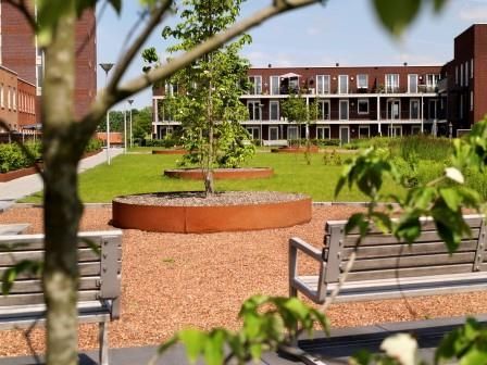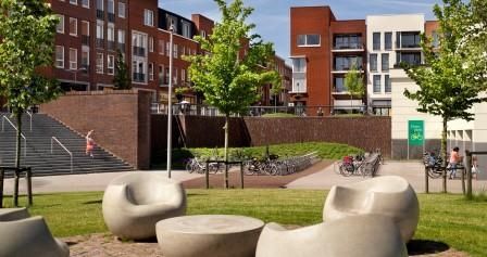 De openbare ruimte verwijst naar de historische stad, met mooie materialen, groenvoorzieningen op de pleinen en bijzondere plekken als trappen en bruggen. Elke ruimte is verschillend van karakter, maar samengesteld met gelijkwaardige materialen. De tuinen binnen de bouwblokken vormen de buitenruimte voor de boven de voorzieningen gelegen woningen. Ze bevatten speelplekken, zitplekken, bloemen- en ligweides, kunst en boomgroepen. De tuinen zijn openbaar toegankelijk, bereikbaar via de trappen en portieken. Aanneemsom: vertrouwelijk Naam opdrachtgever: ASR Vastgoed Ontwikkeling (nu: MRP Development) Contactpersoon opdrachtgever: Take Hannesen Contactgegevens opdrachtgever: info@mrpdevelopment.nl Naam architect: Rijnboutt bv Contactpersoon architect: Richard Koek Contactgegevens architect: r.koek@rijnboutt.nl en press@rijnboutt.nl Naam aannemer: combinatie Van Ginkel/Binder i.o.v. Bouwcombinatie Hurks Slokker Contactpersoon aannemer: Tod Binder Contactgegevens aannemer: info@binder.nl