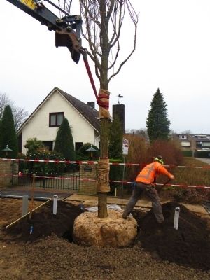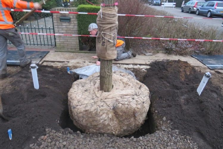 De bomen wogen +/- 2000 kg per stuk en zijn geplant met een 15 tons mobiele kraan. De bomen zijn direct van de vrachtwagen geplant in het gat, hierdoor is de kans op beschadigingen zo klein mogelijk gehouden. De bomen zijn geplant met het BoomZekerPlan, dit houdt in dat Hoefakke 3 jaar nazorg hebben en garantie geeft op de bomen. De kluiten waren door ruimtegebrek bijna even groot als het plantvak. Hiervoor heeft hoveniersbedrijf Hoefakker een speciale techniek bedacht, namelijk het toepassen van een maatbak.