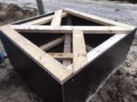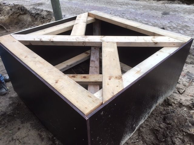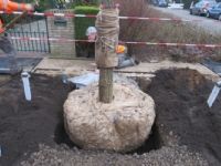 De maatbak werd gemaakt van betonplex op de precieze afmetingen van de kluit. Hieromheen werd granulaat aangebracht en aangetrild. Na het aanbrengen van het bomengranulaat werd de maatbak uit het granulaat gehesen en het gat gevuld met bomengrond.