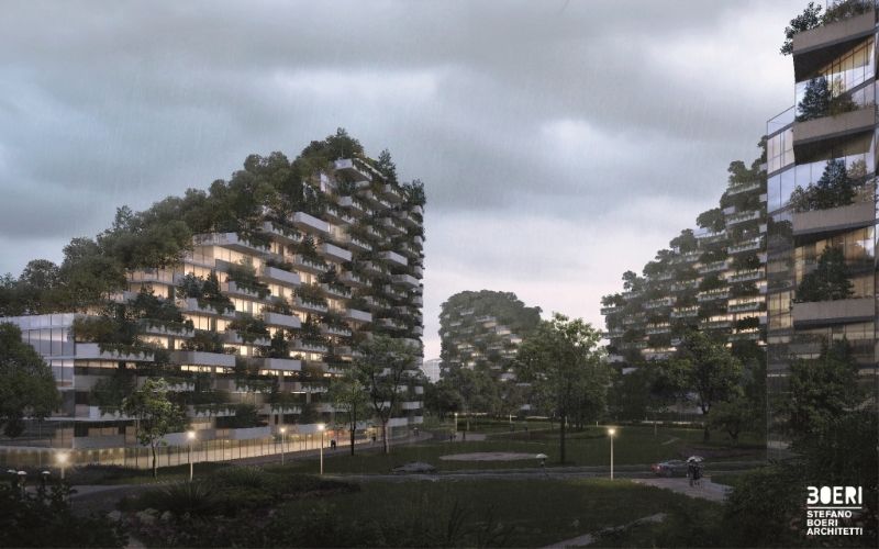 Verbetering luchtkwaliteit Bedoeling is dat de veelheid aan bomen en planten bijdraagt aan de verbetering van de luchtkwaliteit. Daarnaast zorgen ze voor geluidsbarrières, verlagen ze de gemiddelde temperatuur en verbeteren ze het ecosysteem. Boeri hoopt met zijn plannen bij te dragen aan een omgeving die toekomstige klimaatverandering op onze planeet kan weerstaan. Naast het eerder genoemde verticale bos in Milaan, werden ook bouwplannen met beboste wolkenkrabbers ontwikkeld voor onder andere Nanjing, Shanghai en Shenzhen.