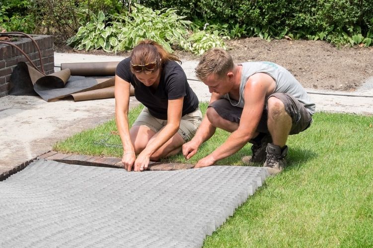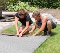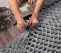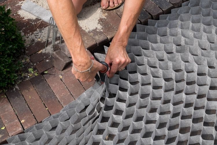 De flexibiliteit van dit bodemstabilisatie-product maakt dat het eventuele oneffenheden op kan vangen. Onder het rooster is ook Dupont Plantex Gold gelegd. Dit onkruiddoek helpt de groei van agressief onkruid te voorkomen. Het eindresultaat is een stevig en goed beloopbaar pad dat ook waterdoorlatend is.