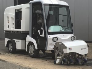 Intelligente combinatie van verschillende innovaties op het gebied van onkruid Ramm bv is een nieuwe speler in de openbare ruimte. Op de GTH Demo Doedag die recent door dit vakblad in Almere werd georganiseerd, stond het bedrijf al met de Oeliatec Mollen Artiflex. Dit is een door Oeliatec zelf ontwikkelde werktuigdrager, waarbij zwaar is ingezet op duurzaam werken en elektrische aandrijving. Helemaal elektrisch is voor deze heetwateronkruidmachine nog een stapje te ver, maar de jury lijkt ervan overtuigd dat het jonge bedrijf gaat scoren met deze complete en intelligente machine. Directeur Gerrit van Nieuwenhuizen vertelde bij die gelegenheid aan onze redactie: 'Het water van 98 graden Celsius wordt met lage druk op de plant gespoten. Je wilt immers alleen het onkruid doden en niet het zand tussen de tegels uit spuiten. De machine werkt met elektrische pompen. De boiler en de druk van de elektrische pompen werken altijd samen, waardoor de temperatuur op de thermosferische sproeikop standaard 98 graden Celsius is. De effectieve werktijd met de accu's is acht uur en het herladen van de accu's duurt vier uur.' Wanneer Van Nieuwenhuizen de machine demonstreert, valt onmiddellijk op dat deze bijna stil werkt, wat een groot pluspunt is in de stad. De sproeikop ziet er ook anders uit dan de gangbare 'douchekoppen': hij heeft een conische vorm en het water komt eruit als een draaikolk. Daardoor is er weinig water nodig om het onkruid te bestrijden. De modulerende boiler zorgt ervoor dat de roetuitstoot minimaal is.