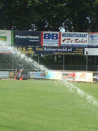 Als afwerking is gekozen voor gras zoden van Bos Graszoden, met een mengsel van DLF. De doelmonden zijn verbeterd en verstevigd met Lava mix. Als afwerking zijn er kooidoelen geplaatst van Erma sport met gefreesde netbevestiging. De eerst onderhoudswerkzaamheden hebben inmiddels plaatsgevonden en het veld wordt officieel geopend zaterdag 9 september voorafgaand aan de wedstrijd Staphorst - Ajax (am) Daarnaast is er een natuurgrasveld gerenoveerd met ook profiel verbetering, dmv pulverfrezen, bezanden spitten, egaliseren, drainage en hier is gekozen voor inzaaien met een Barenbrug mengsel met de coating Yellow Jackett. Het veld is inmiddels vrijgegeven voor het bespelen door de allerkleinste jeugd. Aanneemsom:ca € 150.000,= Naam opdrachtgever: Gemeente Staphorst Contactpersoon opdrachtgever: B. Boer Naam architect: Kybys Meppel Contactpersoon architect: P. vd Woude Naam aannemer: Vos Ruinerwold bv Contactpersoon aannemer: A. Timmerman Contactgegevens aannemer:06-53458282