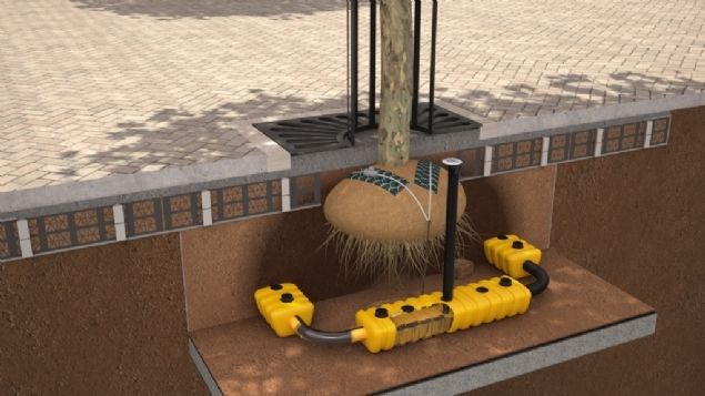Capillaire werking Door gebruik te maken van een natuurlijke capillaire werking kan de functie voor vele jaren worden gewaarborgd. 'In geval van droogte wordt het opgeslagen water gedistribueerd naar de wortels van de beplanting of bomen,' aldus de leverancier van producten voor inrichting van het plantvak en de bescherming van de infrastructuur.