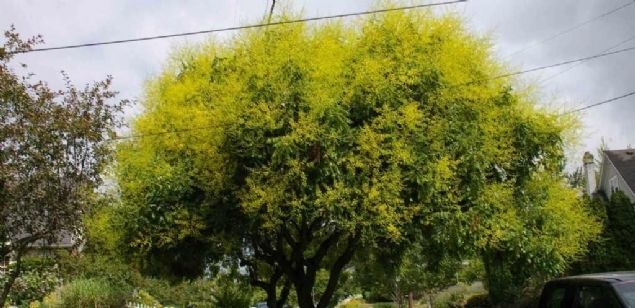 De inspiratiebomen op de afgelopen Boominnovatiedag zorgden voor de juiste stimulans bij verschillende deelnemers aan de verkiezing tot Inspyratieboom 2017. Drie opmerkelijke bomen op drie locaties streden dit jaar om deze titel. De Chinese vernisboom (Rinze Hofman en Patrick Spiegeler) staat in Voorschoten, de zevenzonenboom (Henk Schuitemaker) bevindt zich op een daktuin in Amsterdam, terwijl we de tamme kastanje (Peter Spijker) in Arnhem vinden. Een korte impressie. Chinese vernisboom ('Koelreuteria') Rinze Hofman is boomverzorger bij werkorganisatie Duivenvoorden, het ambtelijk samenwerkingsverband tussen de gemeenten Voorschoten en Wassenaar. Dit jaar dragen hij en zijn beheerder Patrick Spiegeler Koelreuteria paniculata voor. De boom staat in Nederland bekend als Chinese vernisboom, maar ook als lampionboom, blazenboom, gele zeepboom en zelfs als goudenregenboom. Zijn Latijnse benaming dankt hij aan zijn ontdekker, de Duitse bioloog Joseph Koelreuter, die de boom in de achttiende eeuw uit China naar Europa bracht. De soortnaam paniculata verwijst naar de pluimvormige bloeiwijze. De boom staat pal naast het raam van hun kantoor in het gemeentehuis. Vernisboom spreekt letterlijk tot de verbeelding 'Je kunt je bij al deze benamingen wel een voorstelling maken', zo verklaart groendienstmedewerker Rinze Hofman zijn voorkeur voor deze inspiratieboom. 'De benaming goudenregen heeft hij te danken aan zijn bloemen, die de vorm hebben van lange, gele pluimen. De naam lampionboom dankt hij aan de lampionvormige vruchten die hij vanuit de bloemen ontwikkelt. Dit zijn de zaaddozen. Het is vooral een boom met veel sierwaarde. Wij vinden Koelreuteria paniculata zo bijzonder, omdat zijn bloempluimen pas bloeien in juli, augustus of zelfs september. Wanneer je de boom van dichtbij bekijkt, zie je dat het samengesteld oneven geveerd blad met zijn diepgekartelde rand heel decoratief is. Het jonge voorjaarsblad loopt roodgroen uit en wordt naarmate het voorjaar vordert gewoon groen. Ook de gele tot oranje herfstkleur van het blad mag er zijn. De volwassen Koelreuteria paniculata heeft een brede, bolle kroon. Ik heb gelezen dat Koelreuteria in warme oorden zelfs een invasieve soort kan worden. Maar hier hoeven we in Nederland niet bang voor te zijn.' Formidabel beeld Spiegeler bekijkt de inspiratieboom Koelreuteria paniculata vooral vanuit een politiek gezichtspunt: de burger moet er blij mee zijn. 'De bloei valt later dan bij de meeste bomen, zodat bewoners tijdens de invallende herfst nog kunnen genieten van bloemen in de openbare ruimte. Ook hebben bijen en hommels dan nog voedsel. De lampionvormige vruchten blijven daarna nog lang aan de boom zitten, tot ver in de winter en soms zelfs tot aan de nieuwe bloeiperiode. Dat geeft een formidabel beeld.' De groenbeheerders in Voorschoten planten regelmatig Koelreuteria aan. Het totaal staat inmiddels op twaalf: tien staan er op redelijk beschutte locaties in straten en lanen en één staat bij een bejaardentehuis. Spiegeler legt uit: 'We streven naar meer biodiversiteit in Voorschoten. Dat kan; de politieke wind staat gunstig en er wordt niet bezuinigd op groen.' Alles overleefd in de patio De Koelreuteria paniculata waarmee Hofman en Spiegeler op de foto gaan, is een onvolgroeid exemplaar, dat in 1988 door de toenmalige groenbeheerder Kees de Geus is aangeplant na de uitbreiding van het gemeentehuis in Voorschoten. Het is meer een struik dan een boom. De standplaats, een patio van vier bij vier meter, heeft daar ongetwijfeld toe bijgedragen. De boom staat er ondanks de krapte goed bij. Hij heeft al heel wat herinrichtingen van de patio overleefd en is blijven staan terwijl andere beplanting in de loop van de jaren de wijk moest nemen, waaronder wild woekerende bamboe, een waterelementje, winterharde Fuchsia en Acer palmatum. 'Qua eisen is Koelreuteria makkelijk', verklaart Hofman. 'Hij heeft een enigszins losse en vooral goed doorlatende bodem nodig. Wij zitten op een strandwal in Voorschoten, dus dat is ideaal. Verder past hij prima in ons klimaat, want hij kan vorst tot min 15 graden Celsius aan. Een beetje beschutting kan hij wel waarderen, zeker als jonge boom. Je moet hem dus niet vol in de wind zetten langs een doorgaande weg. Hij wordt dan trouwens kapotgereden door het verkeer, want hij wordt niet hoog genoeg. Hier in de patio staat hij wat dat betreft ideaal.' Beter niet snoeien De boom is zijn doel wel een beetje voorbijgeschoten, letterlijk: de takken steken boven de omringende platte daken uit en dus zijn de lampiondoosjes niet zichtbaar van dichtbij. 'We hebben erover nagedacht hem te snoeien', zegt Hofman, 'maar snoeien wordt afgeraden bij Koelreuteria. Het sponsachtige merghout schijnt vatbaar te zijn voor zwamaantasting. Maar in Voorschoten staat ook een Koelreuteria in de voortuin van een particulier, die met regelmaat al zijn takken afzaagt. De boom staat er nog steeds goed bij, dus kennelijk kan terugsnoeien ook goed gaan.' 'Het exemplaar hier in de patio van het gemeentehuis kan echter nog wel even blijven staan', zegt Spiegeler, 'want Koelreuteria is geen snelle groeier en blijft compact. Hij oogt als een meerstammige struik. Als zodanig is hij dan ook goed toepasbaar.' Is de Chinese vernisboom volgens jou de Inspiratieboom 2017? Breng dan je stem uit via deze link.