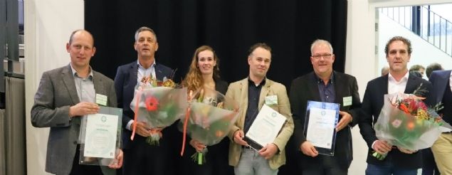 Vertegenwoordigers van Oosthoek Groep, Vos Ruinerwold en H4a Groen kregen de bij het label behorende plaquette uitgereikt door Joris Slooten van de NGF.