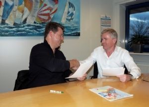 Op de foto: Gerko Roekevisch (l, Almat) en Hans Gilbers (Waterkracht) bij de officiƫle contractondertekening
