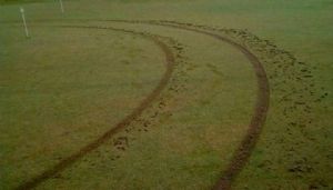 Zo zijn er sporen achtergelaten op de oefengreen (naast de driving range), en op verschillende plekken langs de weg is er door het gras en de berm gereden. De golfbaan spreekt over 'flinke schade' .