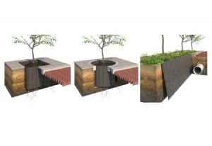 De Rootbarrier Rollrib is gemaakt van HDPE 1,5 mm. Het product wordt verticaal ingebouwd en kan - door de geleidingsribben om de 18 cm - zowel lineair, vierkant als rondom de boom worden geplaatst.