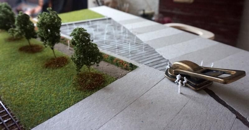 'De rits opent de stenige stad en brengt mensen samen in een omgeving vol groen, verkoeling, ontspanning en spelen,' legt Vromans haar keuze voor een ritssluiting uit. Het gesloten deel van de sluiting wordt een ondiepe waterlijn. Het geopende deel van de sluiting geeft een waterplein met fonteinen prijs. Van daaruit kabbelt er een 'speelbeek' het park in en opent het groene park zich.