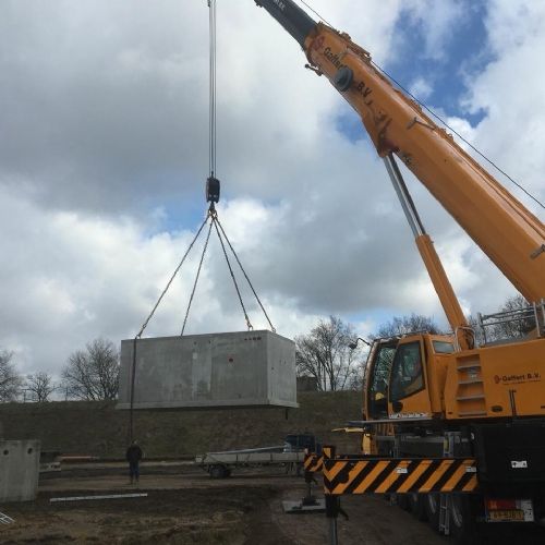 Het waterkunstwerk en het kunstwerk 'Ritssluiting' wordt geheel turn-key uitgevoerd door Rots maatwerk. Vorige week is de technische ruimte en bufferruimte van dit waterkunstwerk door het bedrijf geplaatst, waarna zij het bedrijf verdere werkzaamheden uitvoeren.