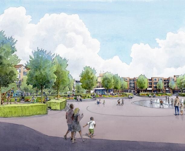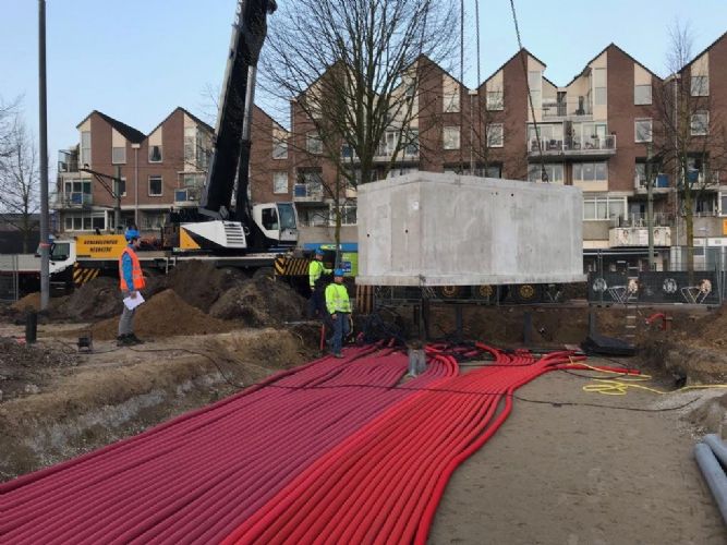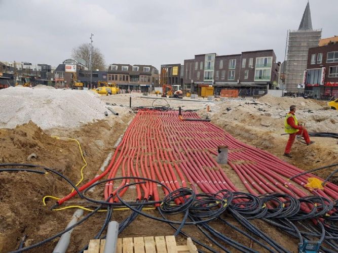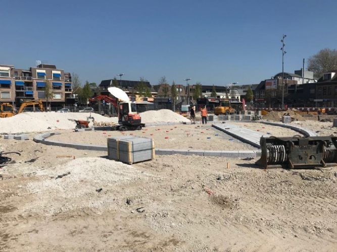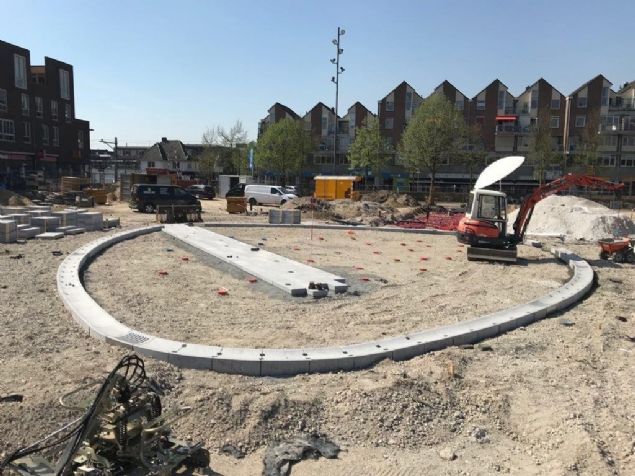 Grote fontein in aanbouw bij herinrichting Markt Ede