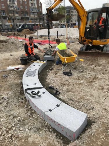 Rots Maatwerk is momenteel druk bezig met de herinrichting van de Markt in Ede. Momenteel wordt er gewerkt aan een grote natuurstenen fontein.