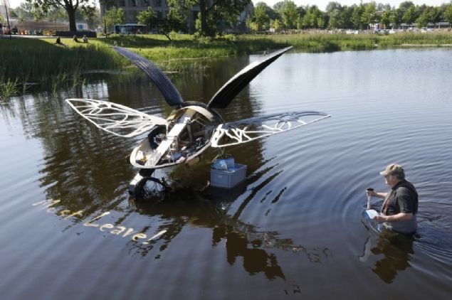 De sculptuur genaamd "Must Leave", licht in de nacht op door glasvezels in de vleugels. Vandaag wordt deze blikvanger onthuld. De waterkever, die in het echt ook voorkomt in de vijver, is een cadeau voor het 100-jarig bestaan van Wageningen University & Research (WUR) en staat symbool voor de bron van diversiteit van de campusgemeenschap. Via crowdfunding werd er zo'n 3000 euro opgehaald om het kunstwerk te realiseren. De rest is gefinancierd met de Spinozapremie van Scheffer. De kever is ook een eerbetoon aan Darwin, Baruch Spinoza en Stephen Forbes. Het gevaarte heeft een spanwijdte van 5,20 meter.