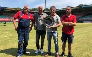 De veldencompetitie was dit jaar een nek-aan-nekrace tussen NEC en Go Ahead Eagles. De Eagles gingen in de eerste en tweede tussenstand aan de leiding. Bij de derde tussenstand was de stand exact gelijk, en nu is het na 38 speelronden NEC dat aan het langste eind trekt. VVCS-voorzitter Danny Hesp reikte de schaal gisteren uit in het Goffertstadion. NEC heeft gemiddeld een 4,0 behaald over het hele seizoen; Go Ahead Eagles een 3,9. Op afstand volgen De Graafschap (2,9) en Jong Ajax (2,8). De grasmat van Fortuna Sittard scoort aanmerkelijk lager (2,1). Jong AZ heeft het beste kunstgrasveld (2,7). FC Dordrecht vinden we onderaan de ranglijst met een score van 1,5. Het is de tweede keer dat NEC de veldencompetitie voor de Jupiler League wint. In het seizoen 2014/2015 mocht het team van Theo van Benthum de schaal ook al in ontvangst nemen. De volledige ranglijst is als volgt. Positie# Club# Score ## 1.# NEC# 4,0## 2.# Go Ahead Eagles# 3,9## 3.# De Graafschap# 2,9## 4.# Jong Ajax# 2,8## 5.# Jong AZ # 2,7## 6.# MVV# 2,6## # Almere City# 2,6## 8.# FC Eindhoven# 2,5## 9.# FC Volendam# 2,47## 10.# Telstar# 2,42## 11.# FC Oss# 2,36## 12.# Jong PSV# 2,35## 13.# FC Emmen# 2,31## 14.# Fortuna Sittard# 2,1## 15.# SC Cambuur# 2## #FC Den Bosch# 2## 17.#RKC Waalwijk# 1,9## 18.# Helmond Sport# 1,6## 19.# FC Dordrecht# 1,5## Bron: VVCS