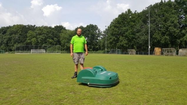 Wel kan hij er wat over vertellen. 'Onze oude machine had ook al digitale mogelijkheden: de GPS, het uitlezen van de machine, noem maar op. Maar nu kunnen gebruikers ook een app op hun telefoon of tablet installeren, waarmee ze de maaier kunnen bedienen. Dus als ik rustig thuis zit kan ik hem naar het laadstation sturen, de snijhoogte instellen, et cetera. De mogelijkheden zijn veel uitgebreider, maar die zijn wél bedoeld voor de specialisten op een sportcentrum. Je moet het bedienen van deze maaier niet aan iedereen overlaten. Dan wordt het een leuk speeltje, dat echter ook heel kwetsbaar is. Daar moet je goed mee uitkijken.'